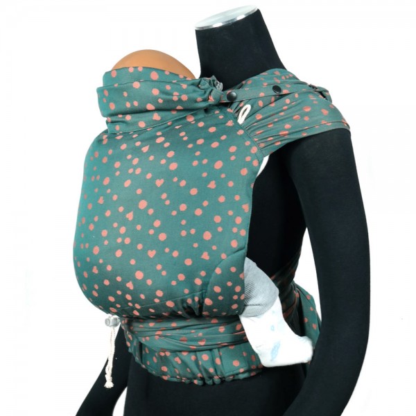 - Hope je nosítko ušité ze žakárového šátku, v kominaci barev petrolejová a skořicová.