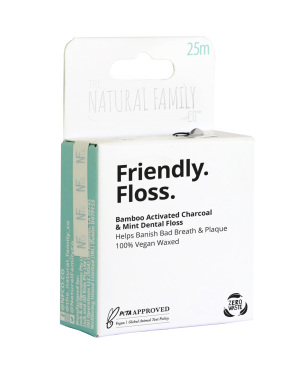 - Friendly Floss zubní nit s bambusem, aktivním uhlím a mátou pomáhá odstraňovat zubní plak. Je potažena rostlinným voskem Candelilla, takže lehce vklouzne mezi zuby.