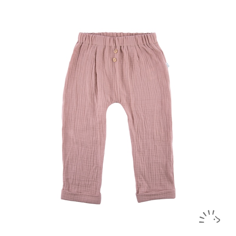 - Pohodlné kalhoty - Mušelínové Mauve 74/80