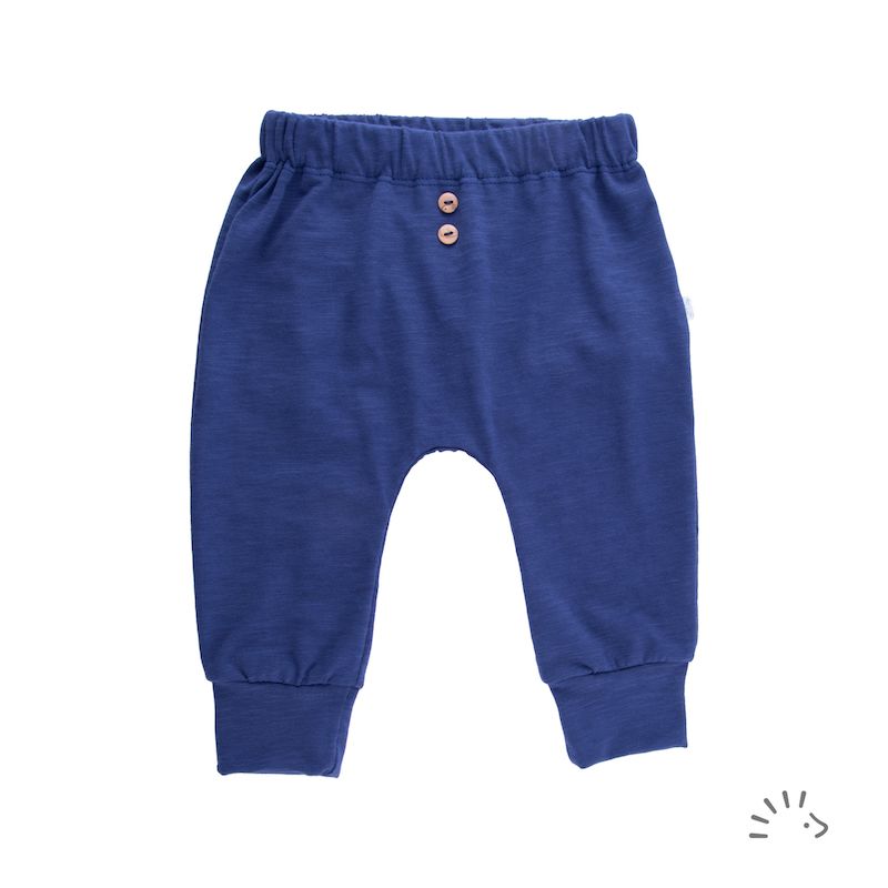 - biobavlněné tepláky s gumou v pase a náplety kolem nožiček